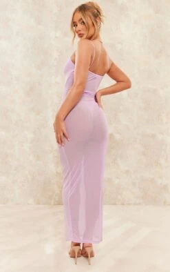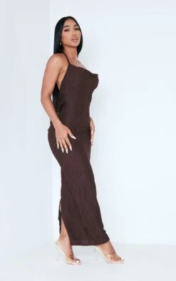 Robe Longue Texturée Marron Chocolat Nouée Au Dos à Col Bénitier Et DerriÚre Froncé