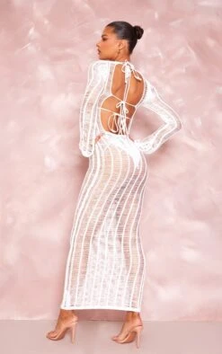 Robe Longue En Maille Tricot Luxe Crème Ouverte Dans Le Dos