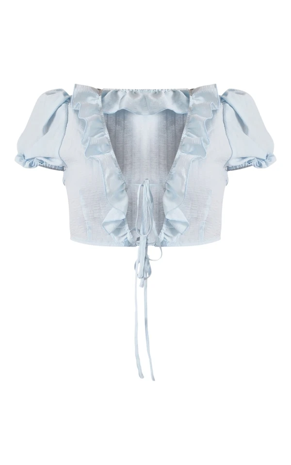 Tellement mignonne cette blouse. Elle est parfaite pour un look de date. Avec son coloris bleu ciel hyper mims, son design volanté et son style découpé, cette blouse nous fait crusher illico. On l’associe tout simplement à un jean large et à une paire de sandales à talon. So cute !
