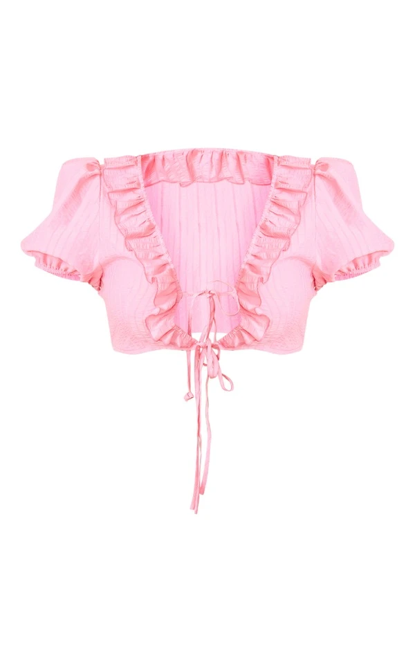 Blouse découpée rose vif à volants