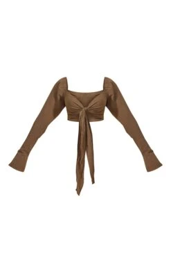 Blouse en effet lin kaki nouée devant