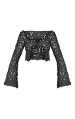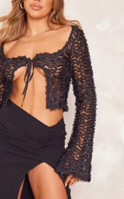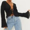 Blouse en mousseline de soie noire Ă volants et manches flare