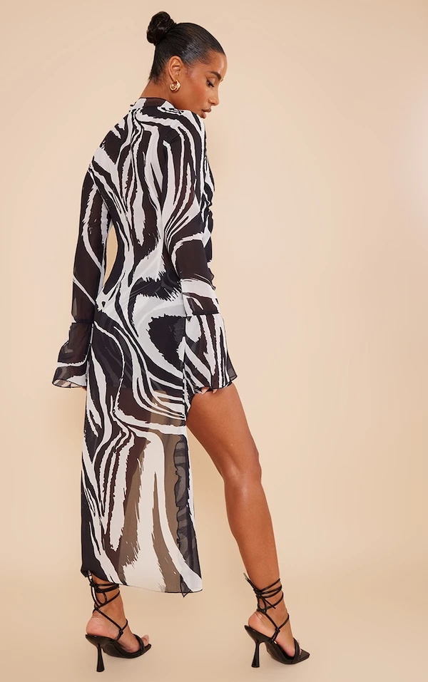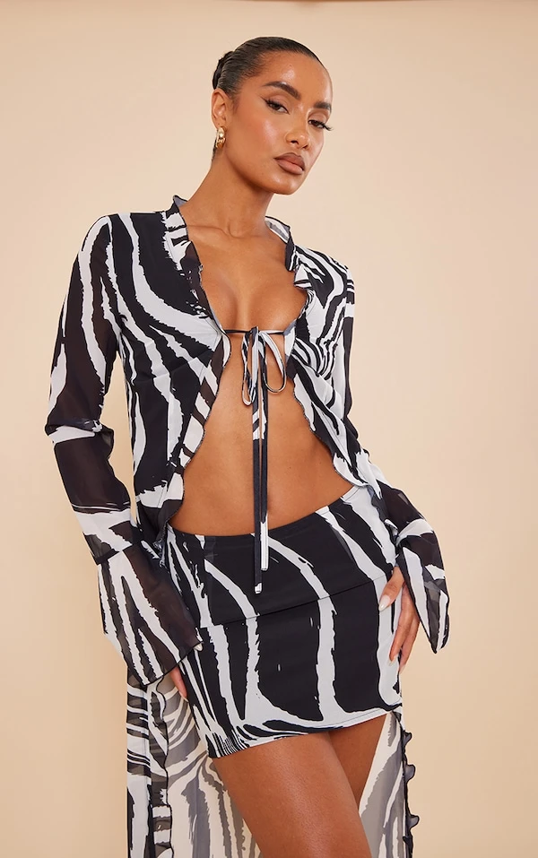 Canonissime cette blouse ! On adore sa matière en mousseline de soie, son motif zébré et son design noué sur le devant. Elle se porte avec la jupe assortie et des sandales lacées pour un look inoubliable. Vous êtes sensationnelle !
