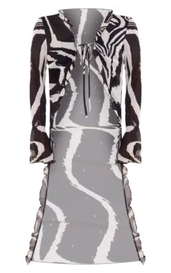 Blouse fluide en mousseline de soie zébrée froncée nouée devant