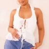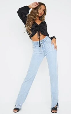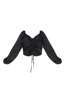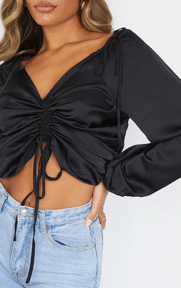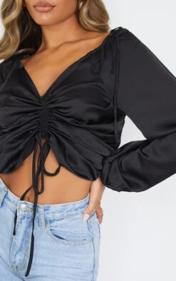 Lux à souhait dans cette blouse satinée. Dans son coloris noir classique et avec son lien sur l’avant, c’est à porter avec du jean et des talons.