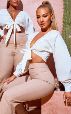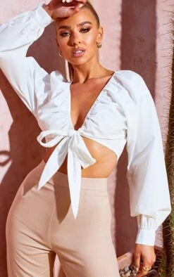 Cute le chemisier! Avec son blanc classique, son effet froncé et son lien noué devant, il est parfait associé à un jean et une paire de talons. 90’s babe!