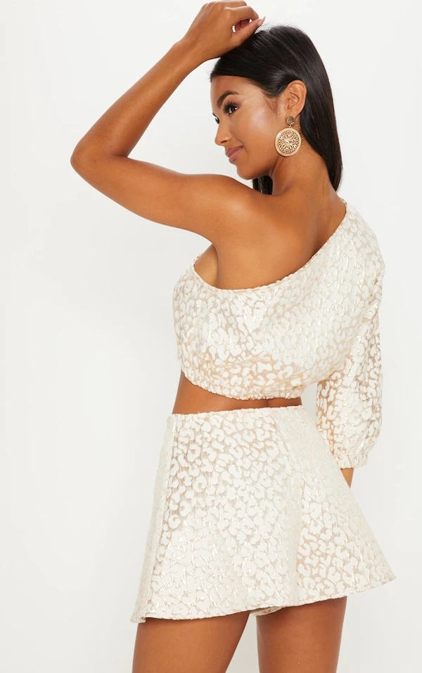 Ce sera vous notre Gold Babe n°1 avec ce petit top crop à imprimé feuilles doré. Chic et sophistiqué, on adore sa coupe asymétrique à manche unique et son joli imprimé doré. Portez-le avec la jupe assortie pour un ensemble tout droit sorti d’un rêve. On craque (et on sera pas les seuls) !