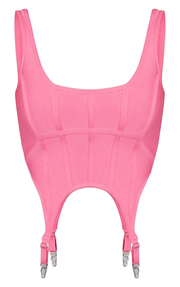 Crop top bandage structuré rose bonbon à ourlet style étriers