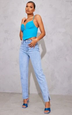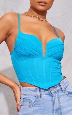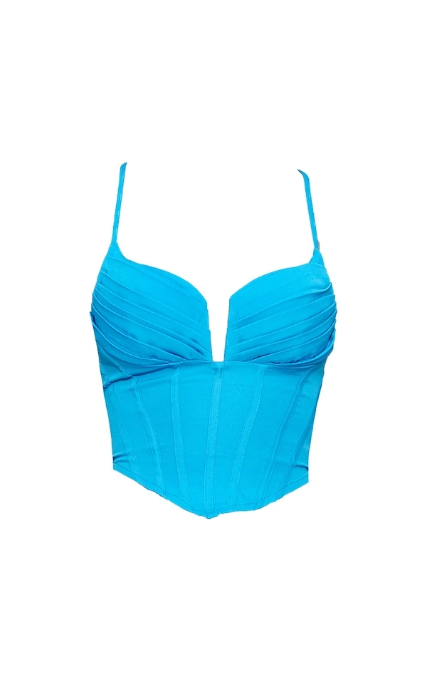 Audacieuse dans ce crop top ! On aime son design corset avec ses liserés et sa couleur bleue éclatante. Au quotidien, on le porte avec un pantalon en jean et des mules à talon. Go préparer son sac et direction la fac !