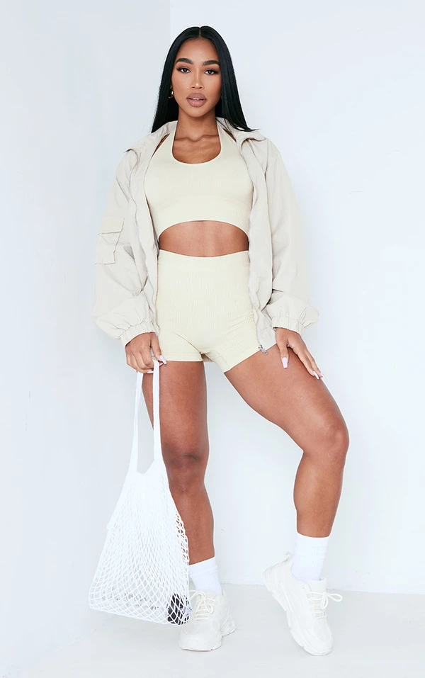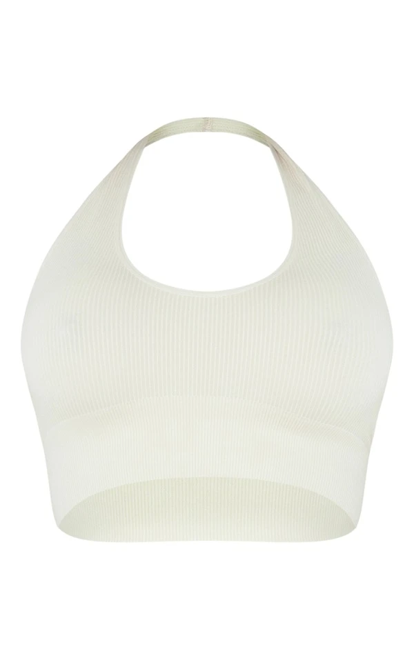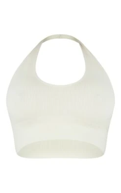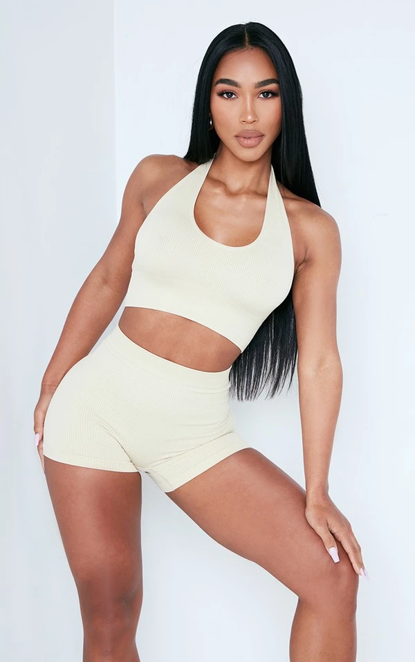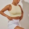 Crop top côtelé beige à dos nu et détail contours