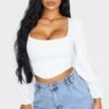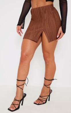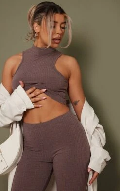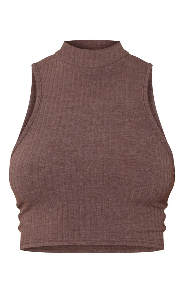 Crop top en maille côtelée large marron à col montant et dos nageur
