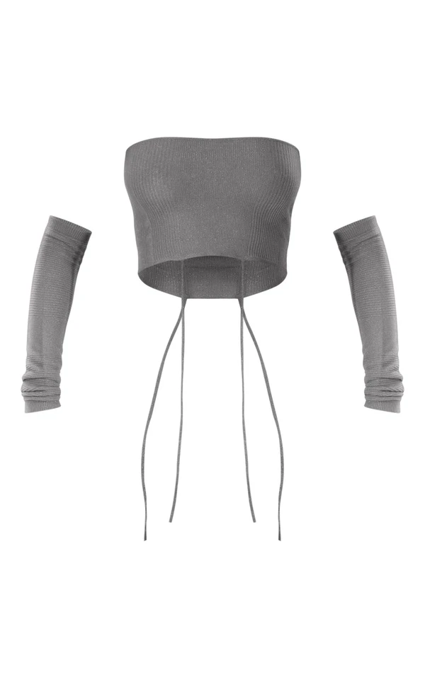 Crop top en maille tricot pailletée gris anthracite à manches