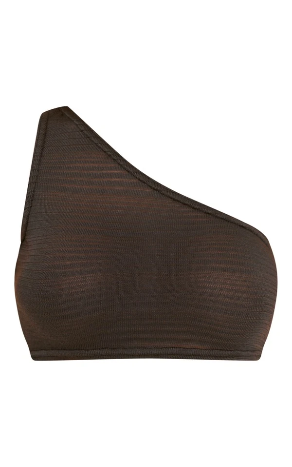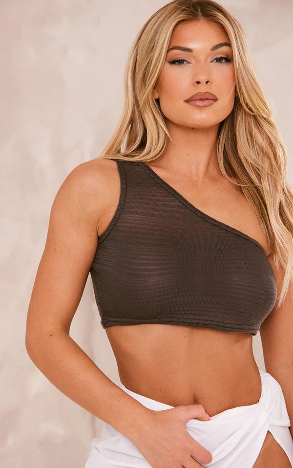 Crop top finement texturé chocolat asymétrique