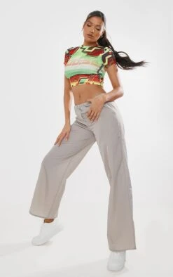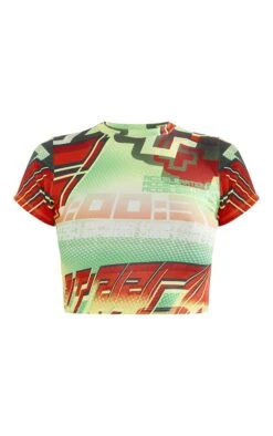 Crop top jaune imprimé à manches courtes