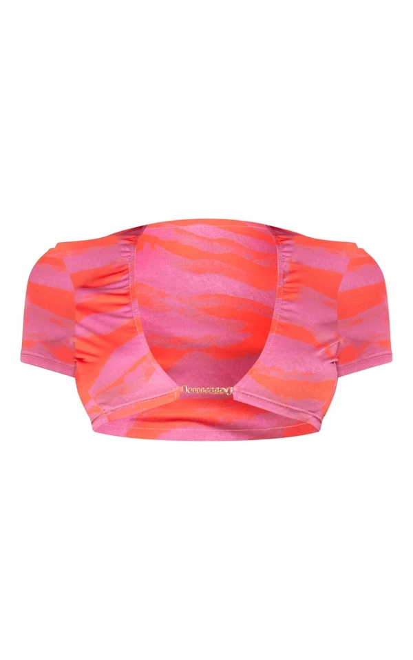 En amour avec la couleur rose de ce crop top. On aime beaucoup son imprimé abstrait et le détail de son empiècement. Pour vous démarquer sous le soleil, portez ce crop top avec la jupe assortie, une paire de sandales lacées et quelques accessoires. Vous avez un don pour la mode, vous !
