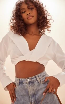 Une babe dans ce petit crop top blanc ! Avec sa coupe col bardot, son coloris blanc et son effet torsadé à l’avant, c’est difficile de faire mieux ! On le porte avec un pantalon similicuir noir et des talons hauts pour un look complet.