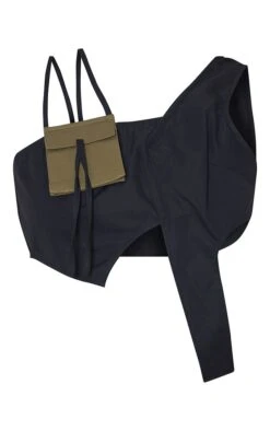 Crop top style utilitaire noir Ă bretelles et poche contrastante