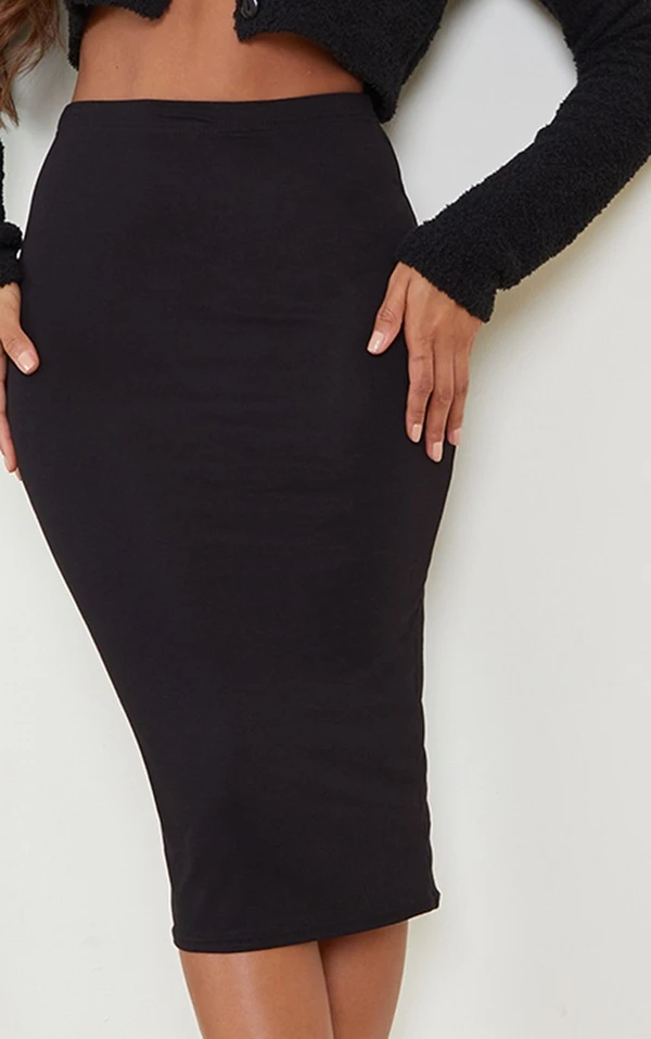 Crush absolu sur la jupe mi-longue! Celle-ci est un grand classique avec sa couleur noire et son jersey hyper confo. On la porte avec des baskets ou des talons, à vous de décider!