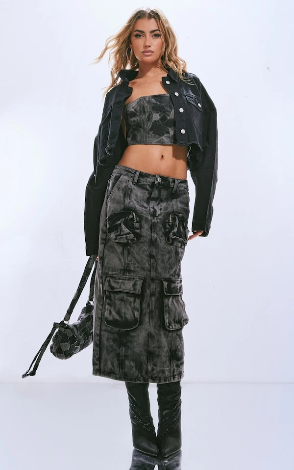 Sublime dans cette jupe ! Avec sa couleur noir javélisé, son design cargo tendance et ses poches, on ne peut pas résister. On la porte avec le top assorti et une paire de baskets et le tour est joué. Si simple d’être stylée !