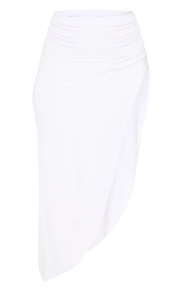 Goddess vibes dans cette jupe longue. On aime sa couleur blanche juste flawless et son design fendu et froncé. Elle se porte avec le top assorti et une paire de talons. Le look est ICONIC!
