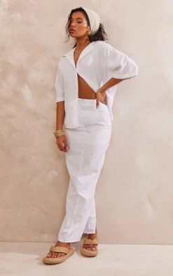 En amour avec la coupe longue de cette jupe au design fendu. Avec la couleur blanche de sa matière en maille tissĂ©e et son style taille haute, on l’adore. Au soleil, on vous conseille de porter cette jupe avec la chemise de la mĂŞme couleur, une paire de claquettes et quelques accessoires. Love it !