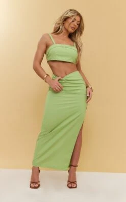 Trop stylĂ©e, cette jupe ! Avec sa coupe longue qu’on aime tant, sa couleur verte toute jolie et son effet lin tendance, elle a tout pour plaire. C’est Ă porter avec son haut assorti et des talons pour mettre tout le monde d’accord. Crush on you !