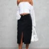 Canon, cette jupe à la coupe mi-longue. Avec la douceur de sa couleur bleu pâle, ses fleurs en applique et son design à taille haute, on l’adore. Portée avec le crop top de la même couleur, une paire de mules et quelques accessoires, cette jupe vous assure un max de style. Love it !