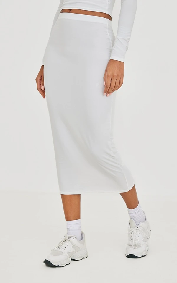 Jupe mi-longue douce blanche