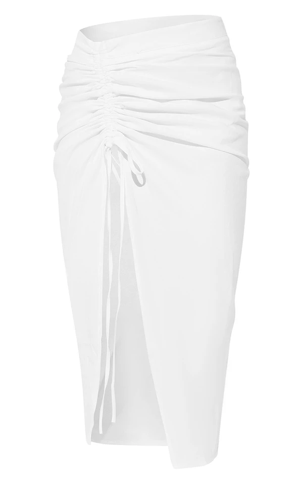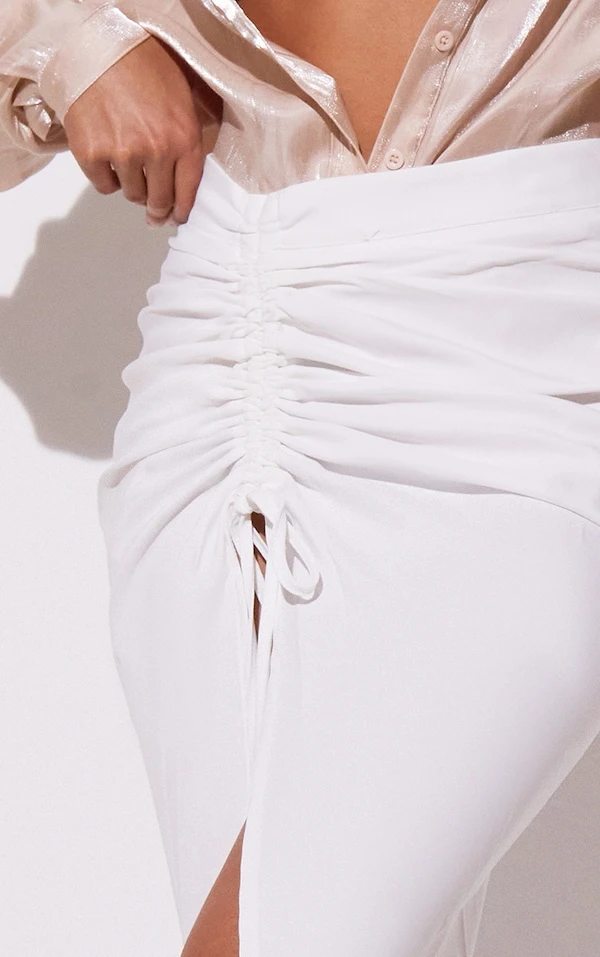 Craquage immédiat sur cette jupe ! On adore sa maille légère tissée qui vient se froncer sur l’avant, mais aussi le coloris blanc classique et la coupe mi-longue. On enfile un tee-shirt noir, des talons et quelques access’ !