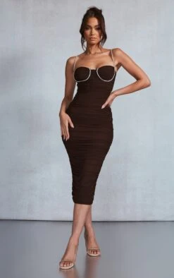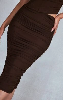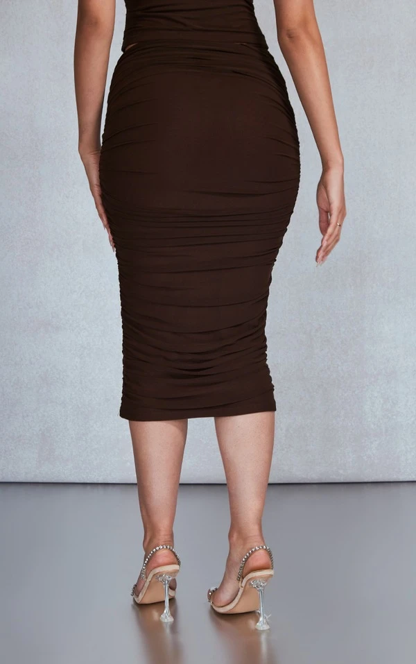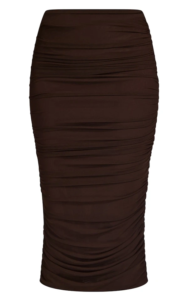 Jupe mi-longue en mesh froncé chocolat