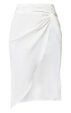 Jupe mi-longue fendue en maille blanche à taille nouée