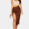 Vision de rêve dans cette jupe à la coupe mi-longue super élégante. On aime sa matière satinée, sa couleur vert sauge kaki et son design lacé. Portée avec un top corset de la même couleur, une paire de mules et quelques accessoires, vous allez faire sensation !