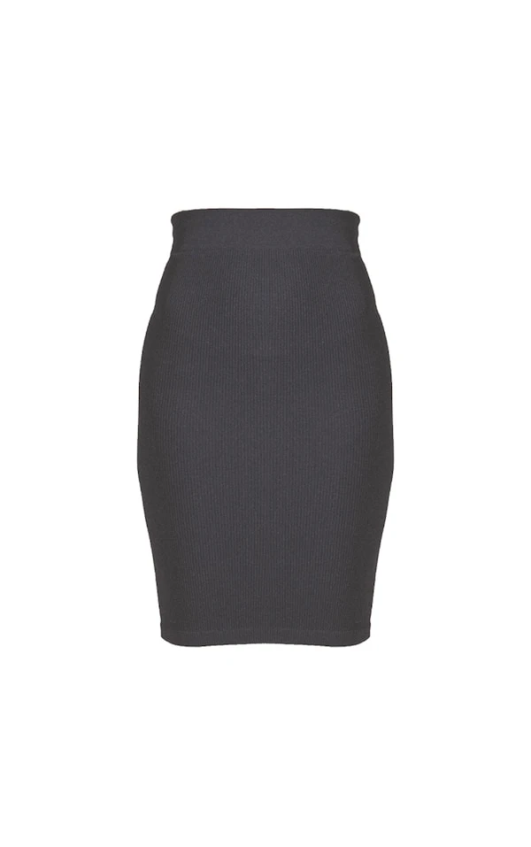 Jupe mi-longue structurée côtelée noire détail contours