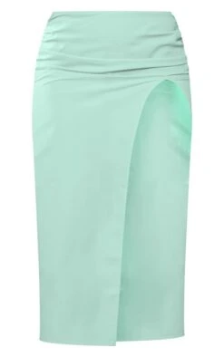 Coup de coeur sur cette jupe mi-longue. Avec sa coupe taille basse flatteuse, sa matière en maille tissée de couleur bleu-vert et son design froncé sur le côté, on l’adore et elle a tout pour plaire. Portée avec le corset de la même couleur, des mules et quelques accessoires, cette jupe vous assure un look coloré et super stylé !