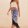 Jupe mi-longue taille basse en maille tissée bleu-vert à côté froncé