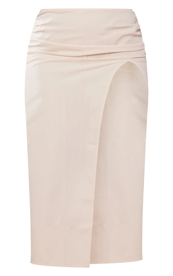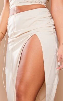 Jupe mi-longue taille basse en maille tissée crème à côté froncé