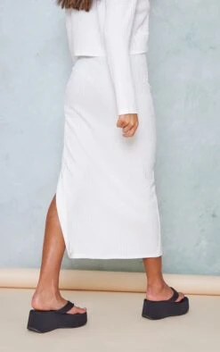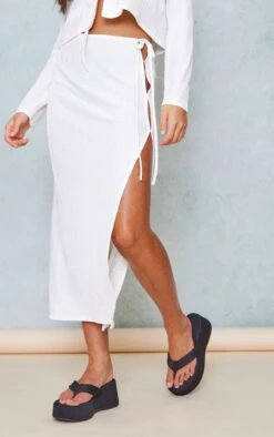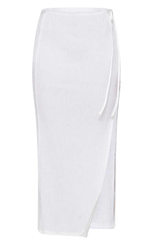 Jupe mi-longue texturée blanche nouée sur les côtés