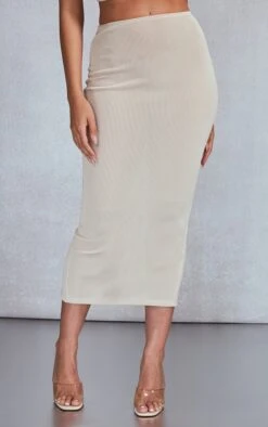 Jupe mi-longue tissée gris pierre plissée taille basse