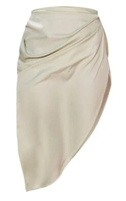 Jupe mi-longue vert sauge à côté froncé