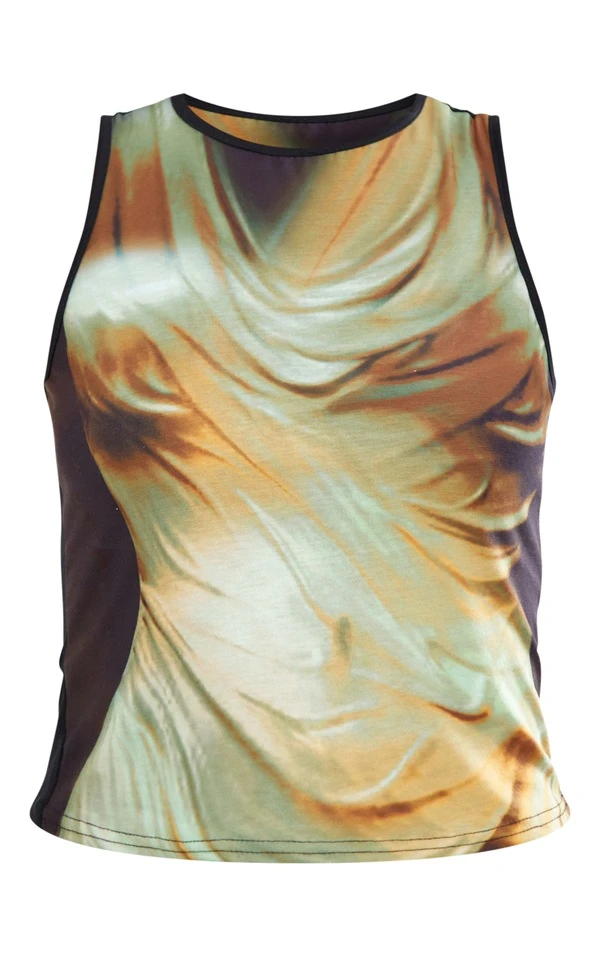 Crop top dos nageur jaune à imprimé corps effet drapé