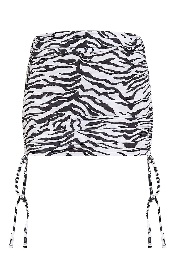 Mini-jupe côtelée imprimé zébrures à côtés froncés