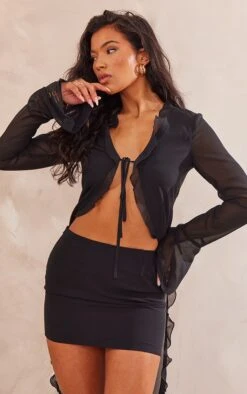 Micro-jupe noire en mousseline de soie