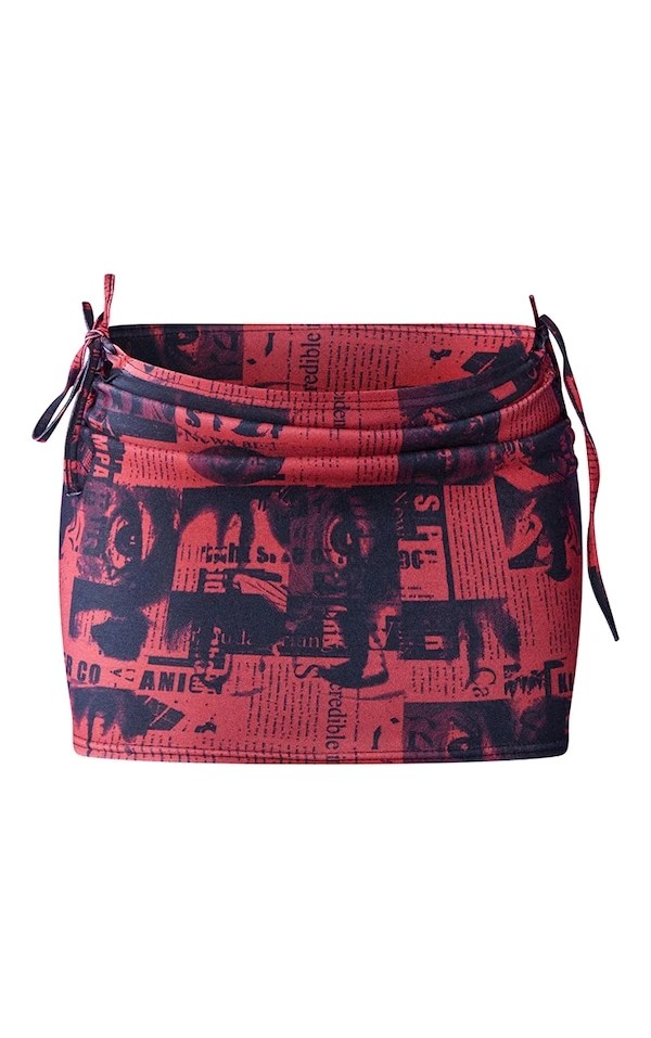 Divine dans cette jupe de couleur rouge. Avec sa coupe très courte, son imprimé stylé et son design lacé sur les côtés, on la porte avec le top corset de la même couleur et une paire de bottes noires. Il ne manque qu’un petit sac et quelques bojoux. Easy !
