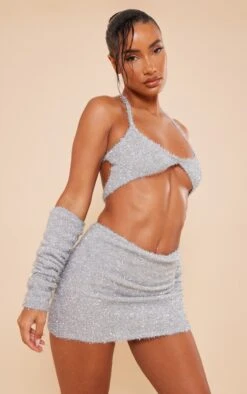 Trop belle, cette jupe à la coupe mini parfaite pour mettre vos jambes en valeur. Avec sa couleur argentée et sa matière en maille duveteuse pailletée, elle a tout pour plaire. Portez cette mini jupe avec la bralette de la même couleur, une paire de talons et quelques accessoires. Vous avez tout compris à la mode, vous !