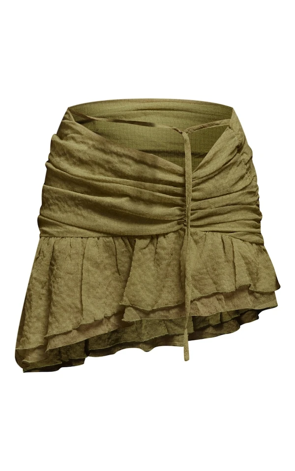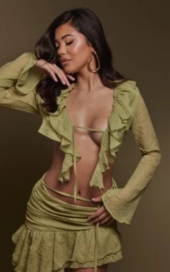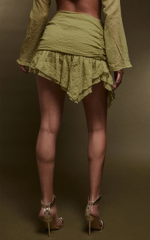 Mini jupe chartreuse en mousseline de soie texturée à ourlet volanté