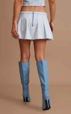 Mini jupe de tennis en jean bleu clair délavé à taille basse