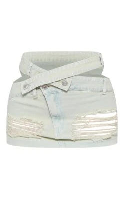 Mini jupe découpée en jean effet vintage bleu clair à taille élimée