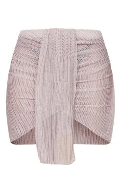 Mini-jupe drapée devant gris champignon en jersey texturé
