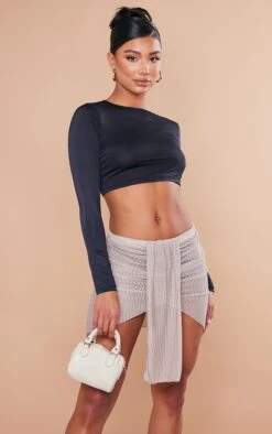 Sublime dans cette mini-jupe ! On adore sa couleur gris champignon, sa matière en jersey texturé et son effet drapé devant. Finalisez votre look du jour en portant cette mini jupe avec une bralette et une paire de talons compensés. Vous allez faire sensation !