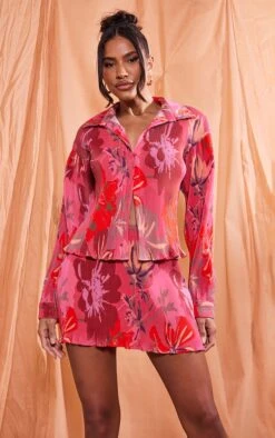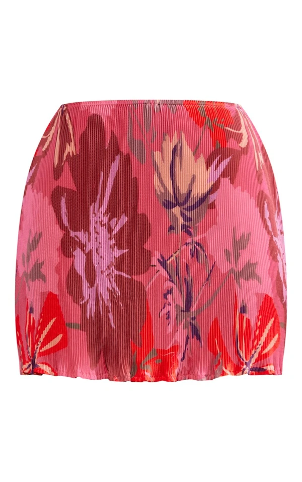 Mini-jupe droite plissée rose imprimée